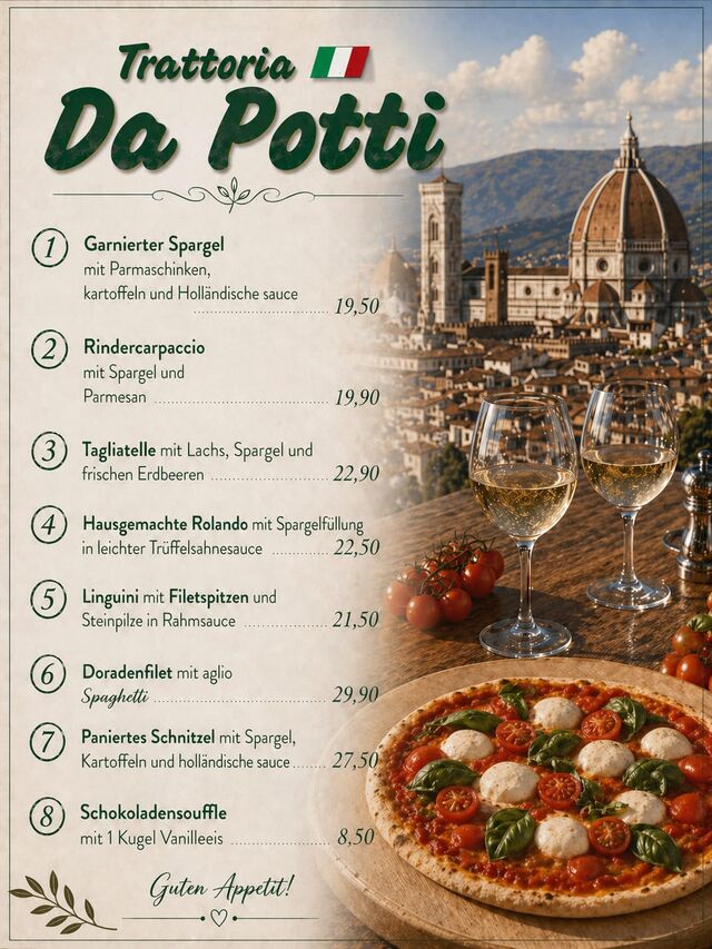 Online reservierenEin geselliger Abend mit italienischem Essen – wir servieren Ihnen frisch zubereitete Gerichte in einer ansprechenden Atmosphäre. Genießen Sie milde Sommerabende in unserem idyllischen Außenbereich.